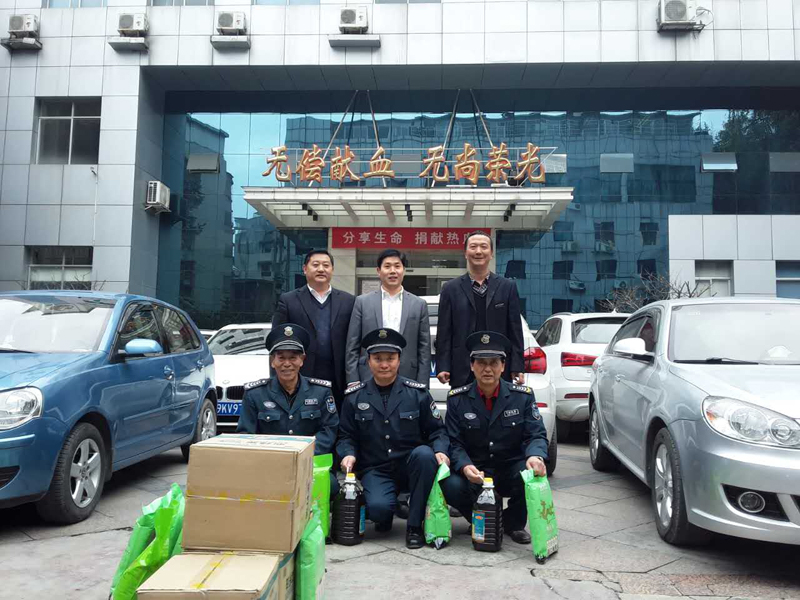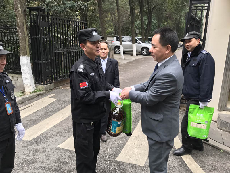 第三組由陟翔集團總經(jīng)理羅仕銀帶隊,保安大隊長吳長沂、劉帆、胡申亮隨同,主要對血液中心、瑞金北路平安物業(yè)、華融物業(yè)、安龍金德瑞、安龍七冶五個站點進行了慰問和祝福。
